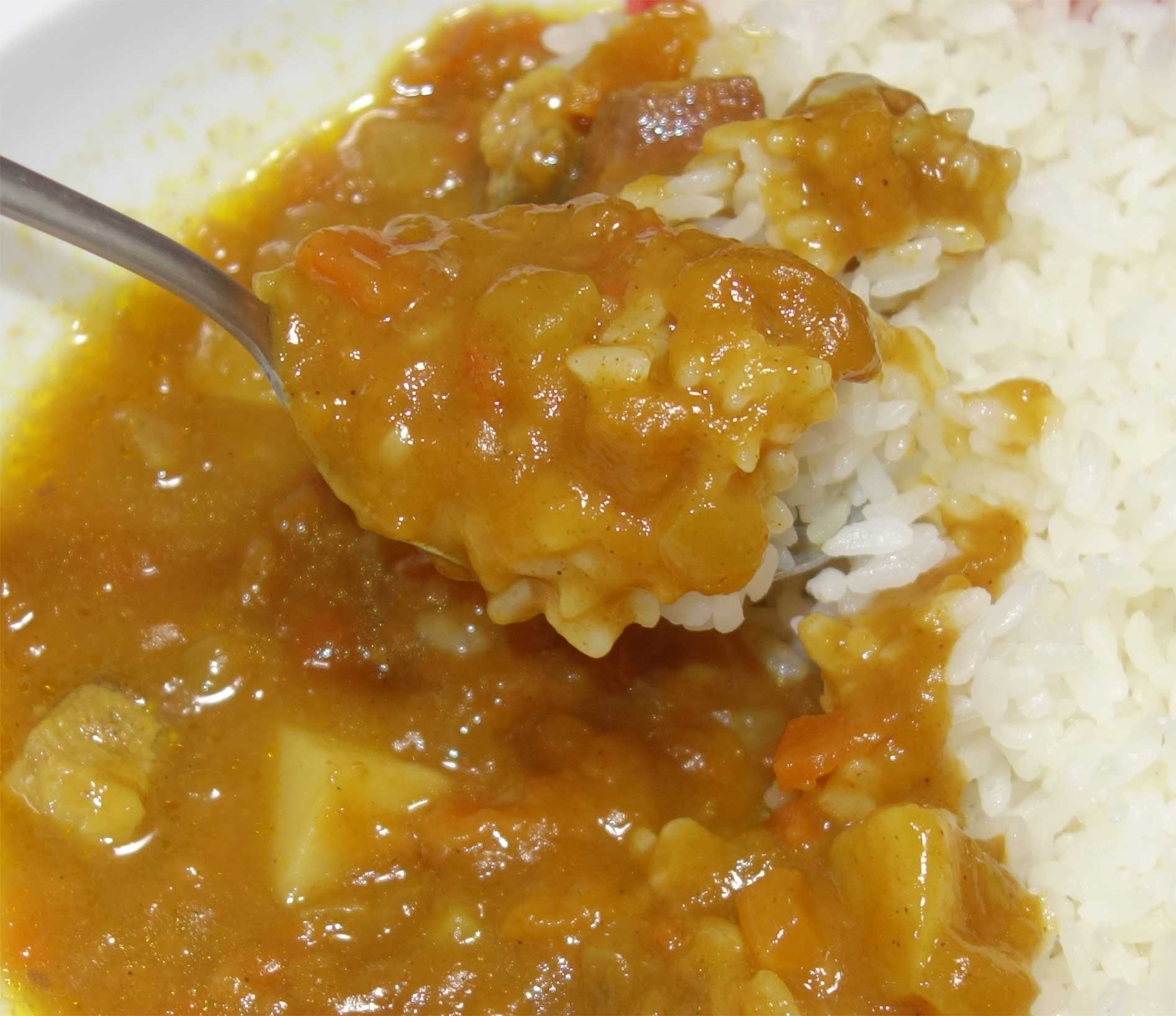 通常のカレーに比べて油分を抑え、野菜やスパイスをバランス良く配合することで、カロリーを大幅にカットしています。