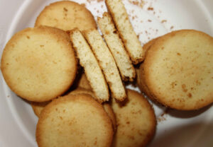 小麦粉、ショートニング、砂糖、ココアパウダー、還元麦芽糖水飴、卵、乳糖、全粉乳、脱脂粉乳、食塩/ソルビトール、卵殻Ca、グリセリン、乳化剤(大豆由来)、V.E、V.B1、V.B2、V.B6、V.B12、V.A、ナイアシン、パントテン酸Ca、葉酸、V.D