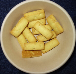 | 栄養成分表示(2枚あたり) | エネルギー:110kcal、たんぱく質:1.2g、脂質:6.5g、炭水化物:11.8g、食塩相当量:0.27g |