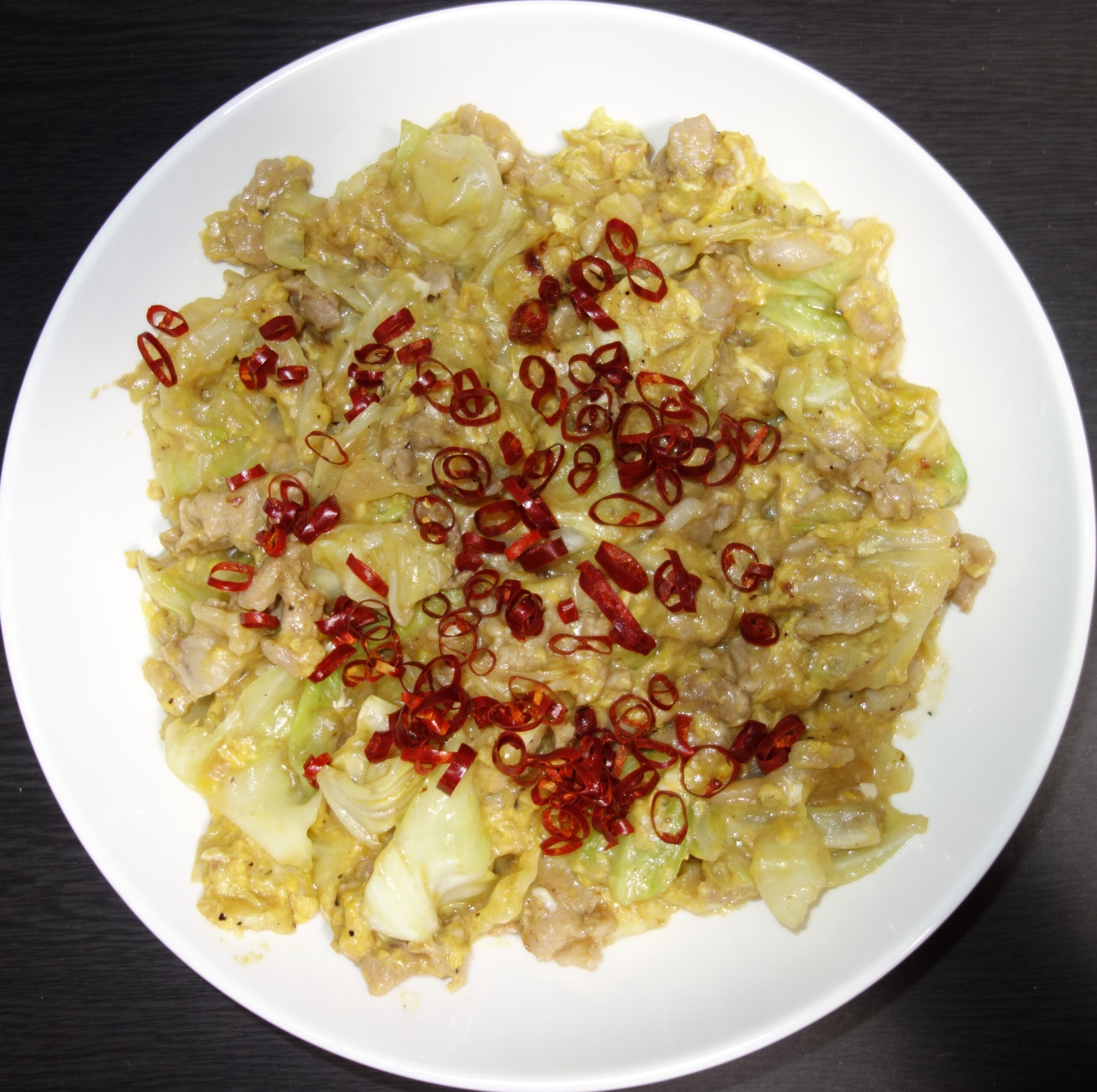 とろ卵豚キャベツの味付けは、とろとろの卵が決め手です。