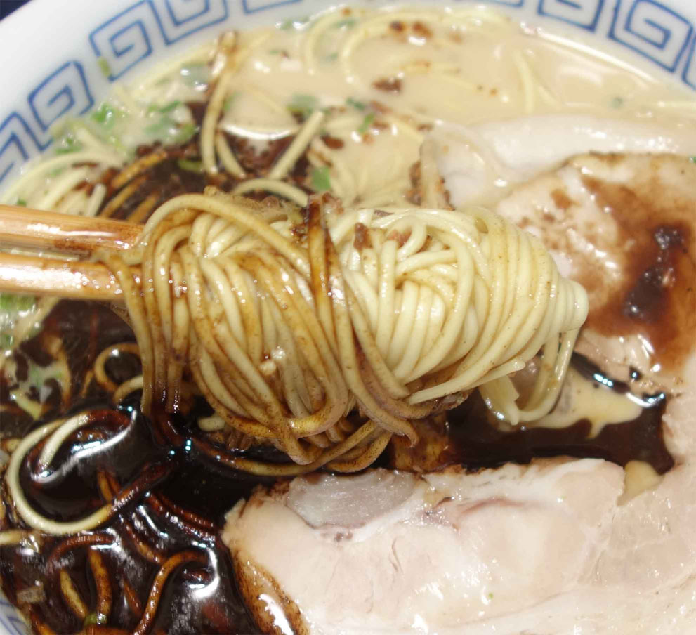 この焦がしニンニクの香りが、豚骨スープのコクを引き立て、食欲をそそります。